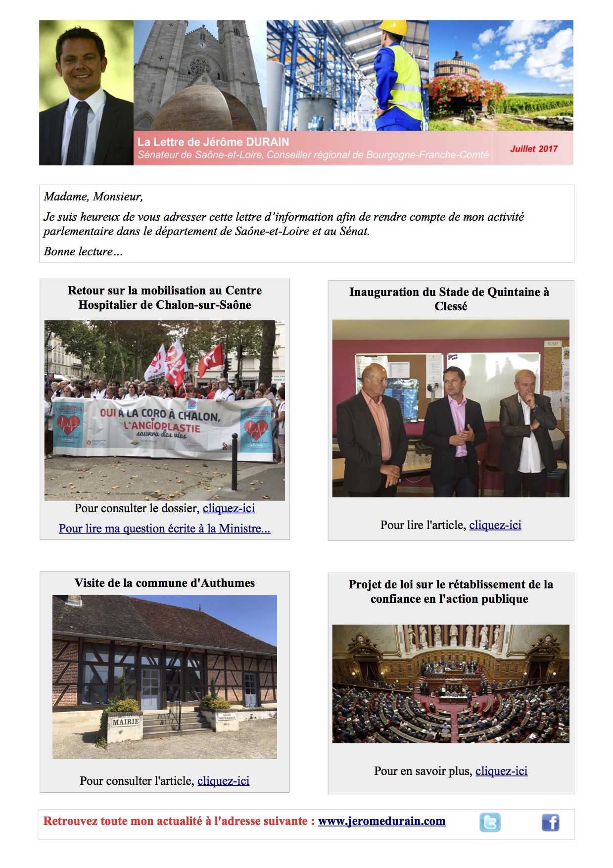 Retrouvez-ici la Lettre d’information de Jérôme Durain, Sénateur de Saône-et-Loire et Conseiller régional de Bourgogne